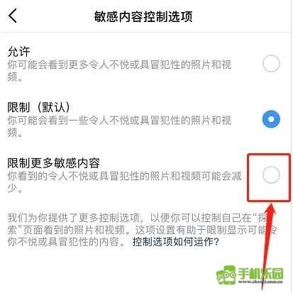 5.Ins的敏感内容很丰富,根据你的需求来设置你的IG敏感内容控制项,然后点击【限制更多敏感内容】