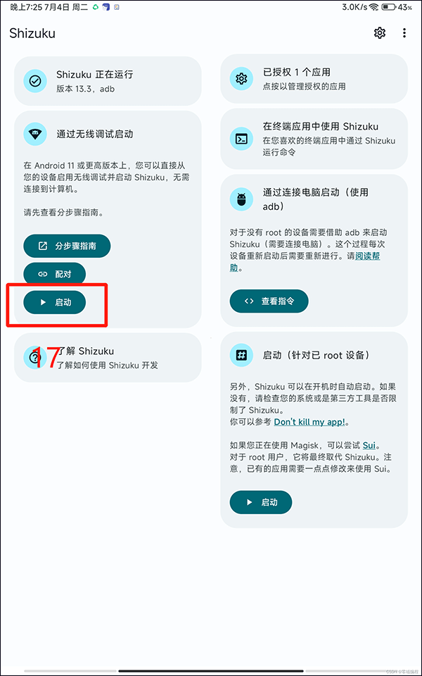 1、下载安装好ShizukuRunner后,打开软件——点击配对——通知设置——允许通知