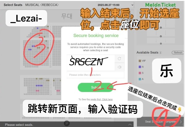 进入选票前输入验证码,输入完毕后,直接点击座位进行选择!!!不同座位不同价格右边都会有标出来