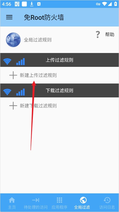 1、进入全局过滤规则页面,点击“新建/上传过滤规则”;