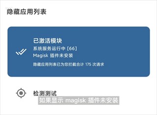 4、成功隐藏 MOMO 检测,继续隐藏 magic 检测排除列表,继续勾选 majus 和检测