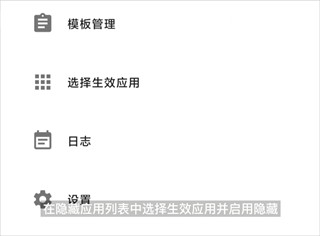 8、返回主页面,选择需要隐藏的 APP 应用,点击启用隐藏,选择启用隐藏方式,启用刚才设置的模板,点击右上角的保存,这样就设置好了