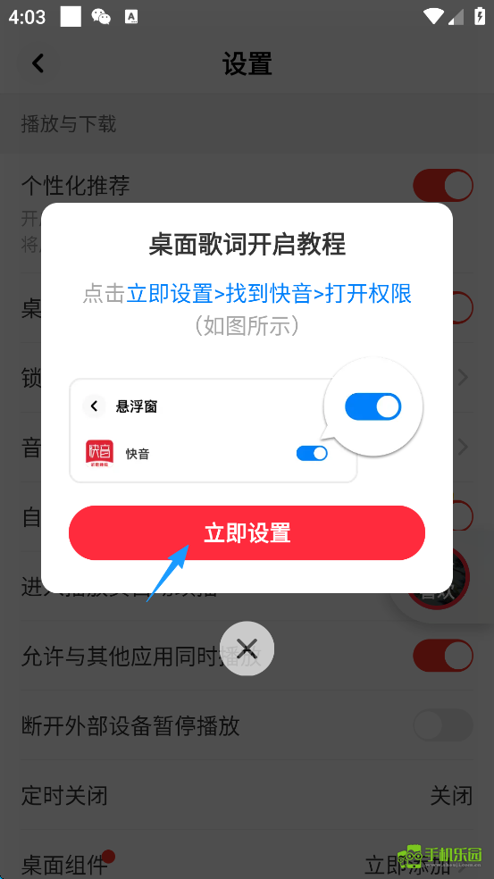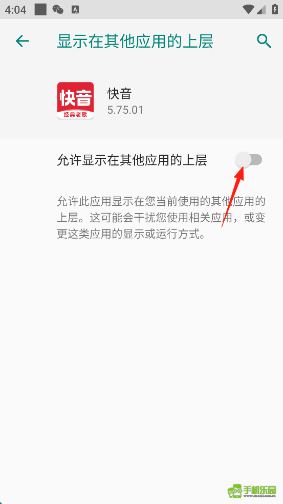 5、点击屏幕右侧的开关,允许显示在其他应用的上层。