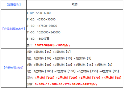 弓箭,最高可升级到5星,达到60级
