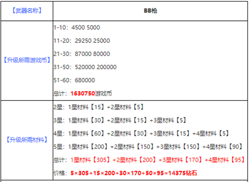BB枪,最高可升级到5星,达到60级