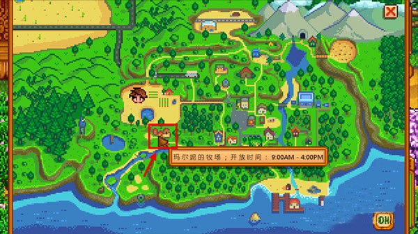 3、那么接下来就要在地图上找到在玛尔妮农场了。位置:自家农场右下侧一点点。