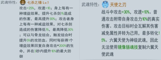 在度过了前期单养以后,每个玩家的副位置也渐渐生成。副位置,一般是输出武魂,在前期主剑的情况下,可以简单的副养骨龙,但最终副位置还是走向输出武魂的。副位置的培养方式,一般以不和主武魂冲突为主。例如(非土豪),主武魂用凤凰心法,副武魂就用猫的心法;主武魂用光明阵营的魂灵,副武魂就用黑暗的等等。这里介绍七杀剑、天使、蓝电霸王龙、鬼魅等作为副武魂位置。详细介绍如下: