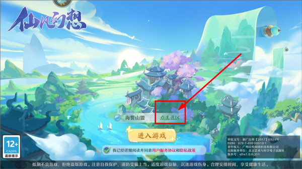 1、打开仙凡幻想游戏,登录账号进入游戏页面,玩家需要点击选区;