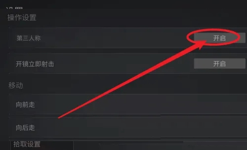 3、最后,在操作设置页面点击开启第三人称即可。