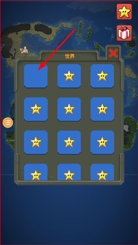 2、打开世界页面,玩家可查看创造的世界和已解锁的世界,点击格子中的世界;