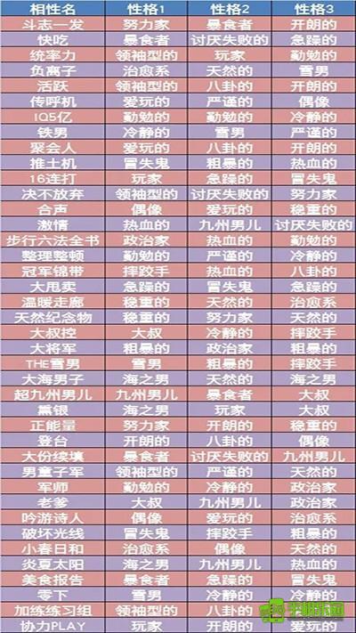 1、选手个性一览;