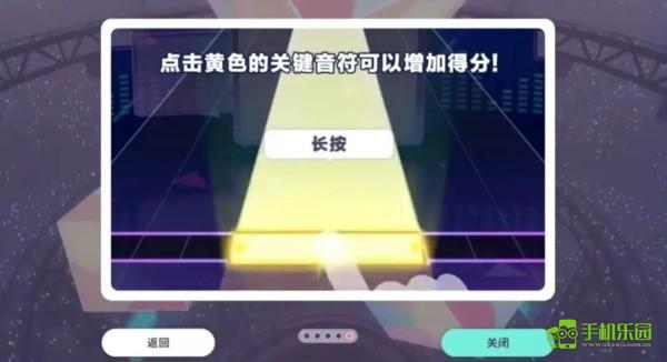 游戏内还有除了普通音符外的关键加分音符,点击黄色关键音符可以额外加分。