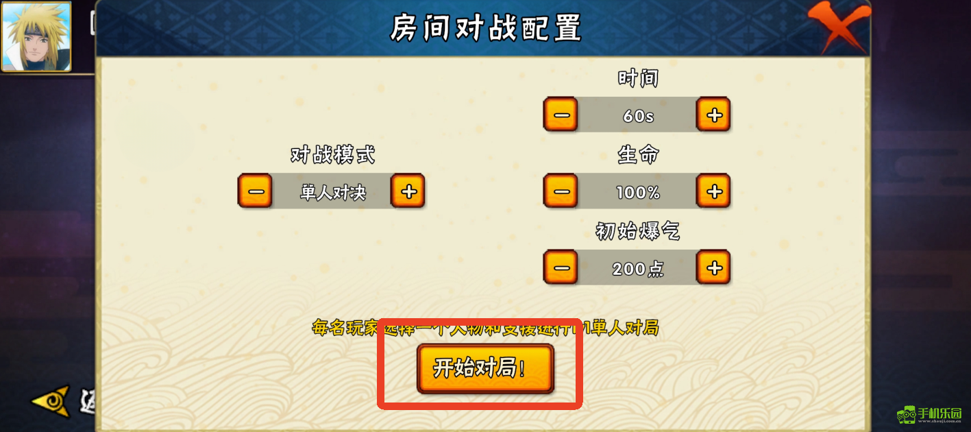 2、点击下方开始创建房间,设置房间对战配置后点击【开始对局】。